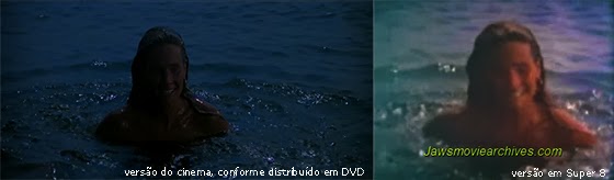 Essa cópia compacta, resgatada por um fã, provavelmente foi montada a partir do material bruto, antes da pós-produção. Isso pode explicar porque nela, curiosamente o primeiro ataque do tubarão acontece de dia, não de noite. Confira no player abaixo ou clicando aqui.